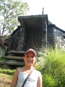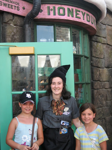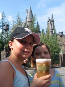 Ollivander’s wandshop. The line, the bloody line. Long, long line in the hot, hot sun. However, the one good thing about the line, was that it was all outside and easy to jump in and out if you had someone to save your place. So J and I took turns waiting while the other went exploring with the kids. The first stop for them, was to get some Butterbeer, which tasted like amix between cream soda and butterscotch. Truly delicious!