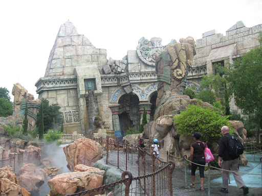 This portion of the trip will mostly be photographs as I really have not much to say about amusement parks. Oh, who am I kidding? I always have lots to say. Thus begins the part of our trip that I equate to a voyage inside a surreal rabbit hole lined with gift shops. The whole purpose of the the place is to make you spend money. Oh, they throw in a few thrills now and then with a ride or two, but in the end, the thrill is never worth the hour’s wait in line. And yet, we do it anyway, and somehow manage to have fun despite the mob of people, the hot sun and the cheesy props.
