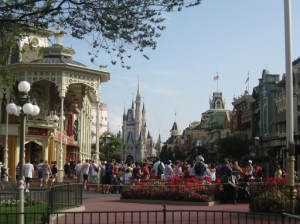 To conclude our visit to the Magic Kingdom, we tried to view Mickey’s Philaharmagic, a 3-D animation, but it crapped out five minutes into it. Too bad, though ’cause it looked good. We also decided to ride Big Thunder Mountain again, before heading home for the night, because we enjoyed it so much (rollercoasters make me laugh hysterically). On our way out, we had trouble getting through due to the nightly Disney parade. Once again, the floats were all lit up and and everything looked amazing. But we were tired, and well, didn’t really care about the Disney characters so we found a way through. While we were on the ferry back to our hotel, we got to see the fireworks from a distance. It was perfect.