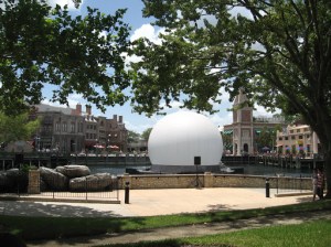 | Weird floaty ball thing in middle of man-made pond. Think it was for the fireworks. |
