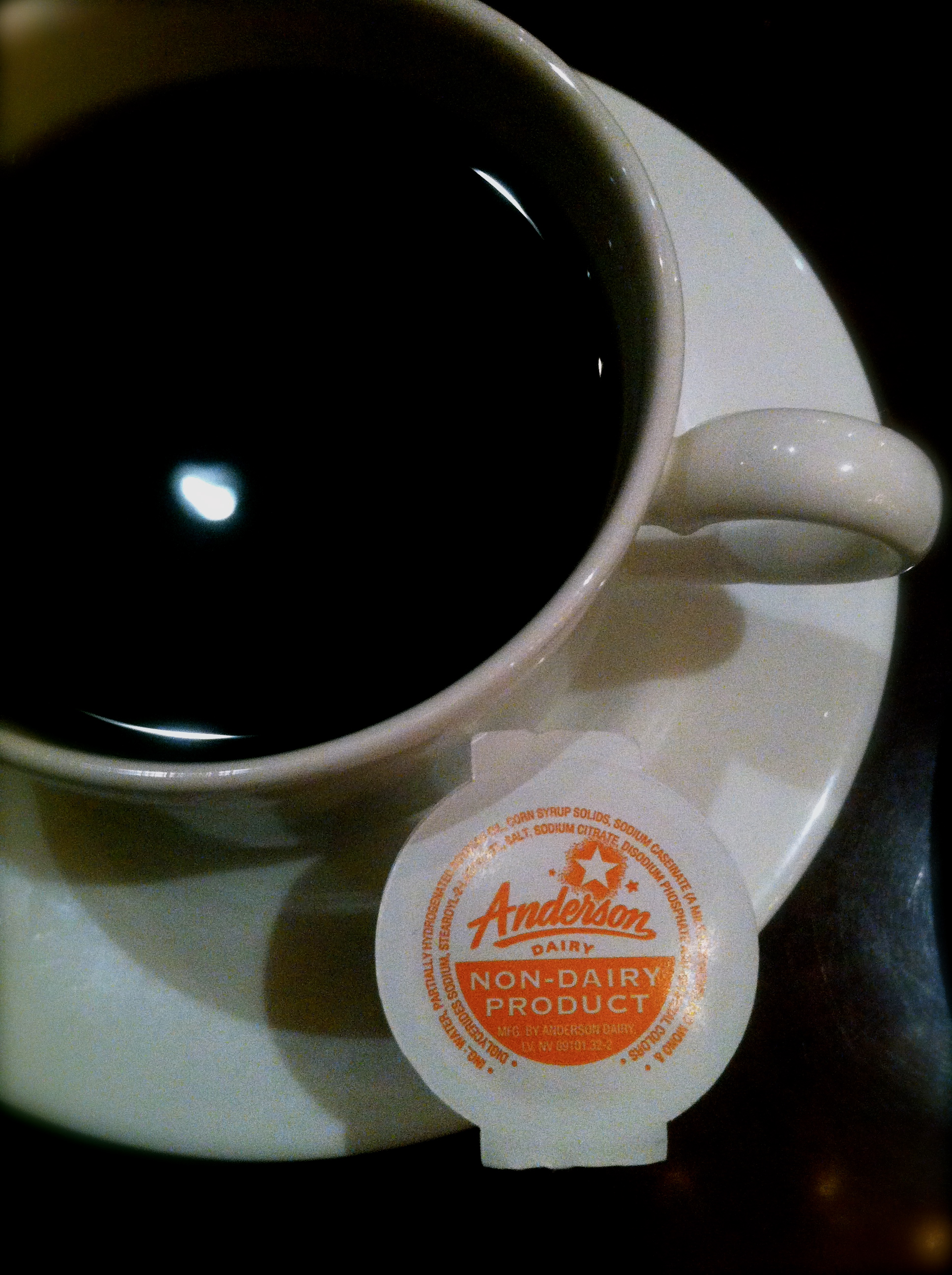 Yep. Las Vegas summed up in a creamer. I mean non-dairy product…. Or how J puts it: “The closer you look, the less real it gets.”